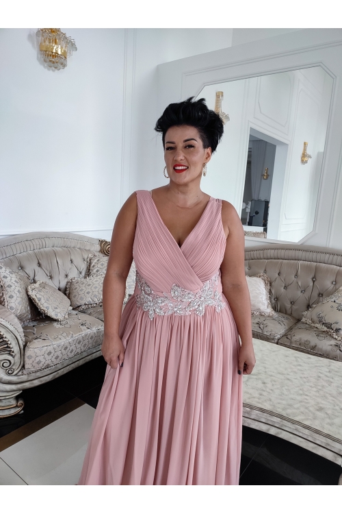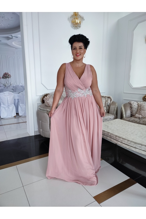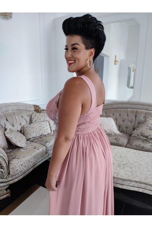 Dámské společenské dlouhé růžovo pudrové šaty KIARA na ramínkách