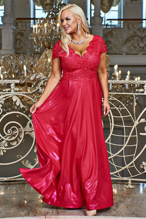 Dámské společenské dlouhé malinové šaty NIKOL s krátkým rukávem