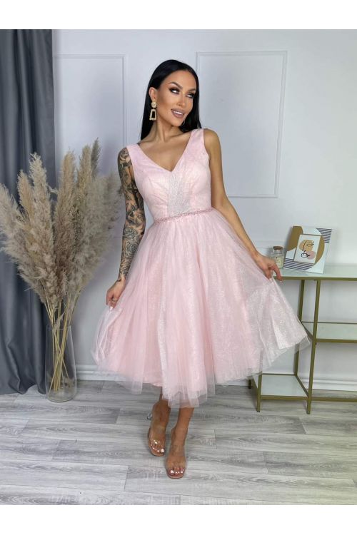 Nové společenské světle růžové šaty KLAUDIE na ramínkách