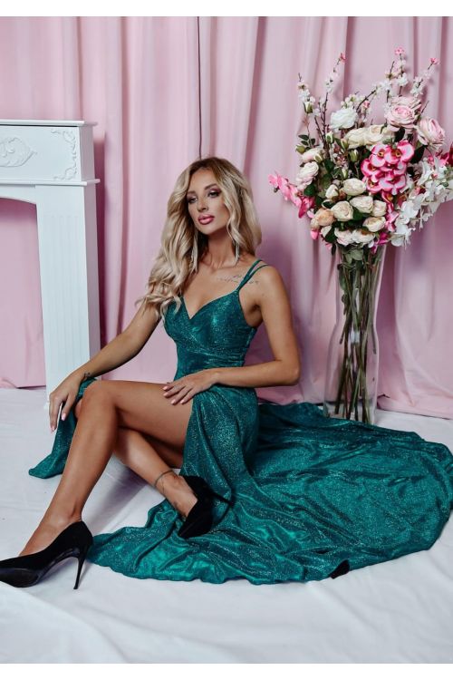 Dámské společenské dlouhé šaty na ramínka TIFANI LUX ZELENE