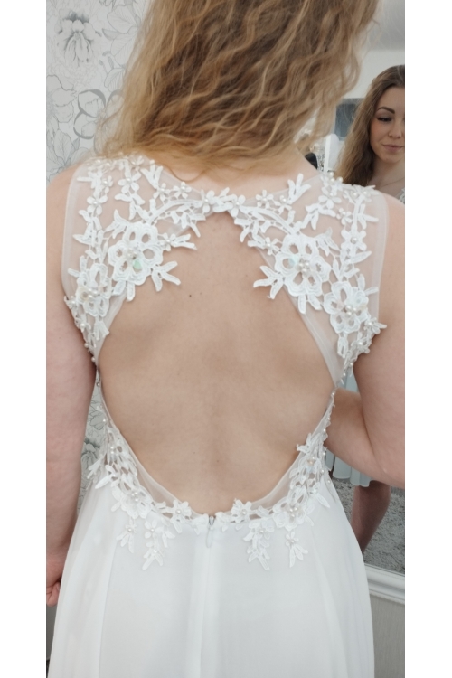 Tyto šaty jsou zdobené krajkou, perličkami a duhovými plastovými flitry. Vzadu jsou odhalená záda a šaty se zapínají na zip. Podšívka je z polyesterového materiálu. Velikost šatů je L, obvod hrudi je 90cm, obvod pasu je 68cm, obvod boků je 106cm a délka šatů je 98cm. Skvělá volba jako dobrý základ pro look na různé příležitosti. Šaty se hodí i pro družičky.