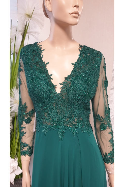 Dámské dlouhé společenské šaty CARMEN BROCATE s tylovým rukávkem ve velikosti 56. Šaty jsou v barvě červené. Na předním díle je krajkový vršek, který umožnuje odhalit a zdůraznit vaši postavu. Na předním díle šatů je rozparek, tylový rukávek u šatů je také zdobený krajkou. Šaty jsou z krásného třpytivého materiálu. Vzadu jsou šaty na zip. Složení: 80% polyester, 15% viskoza, 5% elastan. Obvod hrudi je 130 cm, obvod pasu je 120 cm, obvod boků je 150cm, délka šatů od průramku je 130 cm. Tyto jedinečné šaty jsou vyrobeny z vysoce kvalitního materiálu a budete v nich nejen pohodlně, ale také skvěle vypadat!