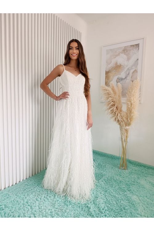 Tyto svatební šaty značky NATALI jsou bohatě zdobené krajkou, 3D květy a perličkami. Velikost šatů je 46. Šaty mají krátký rukávek a jsou v barvě bílé. Pod šaty lze dát spodnici aby vypadaly bohatší, ale můžou být i bez spodnice. Vzadu jsou šaty na zip a šněrování. Rukavičky nejsou součástí svatebních šatů, lze je zakoupit zvlášt. V těchto svatebních šatech budete vypadat vždy stylově. Bez ohledu na to, kde se nacházíte se budete cítit jako v pohádkové romantice!