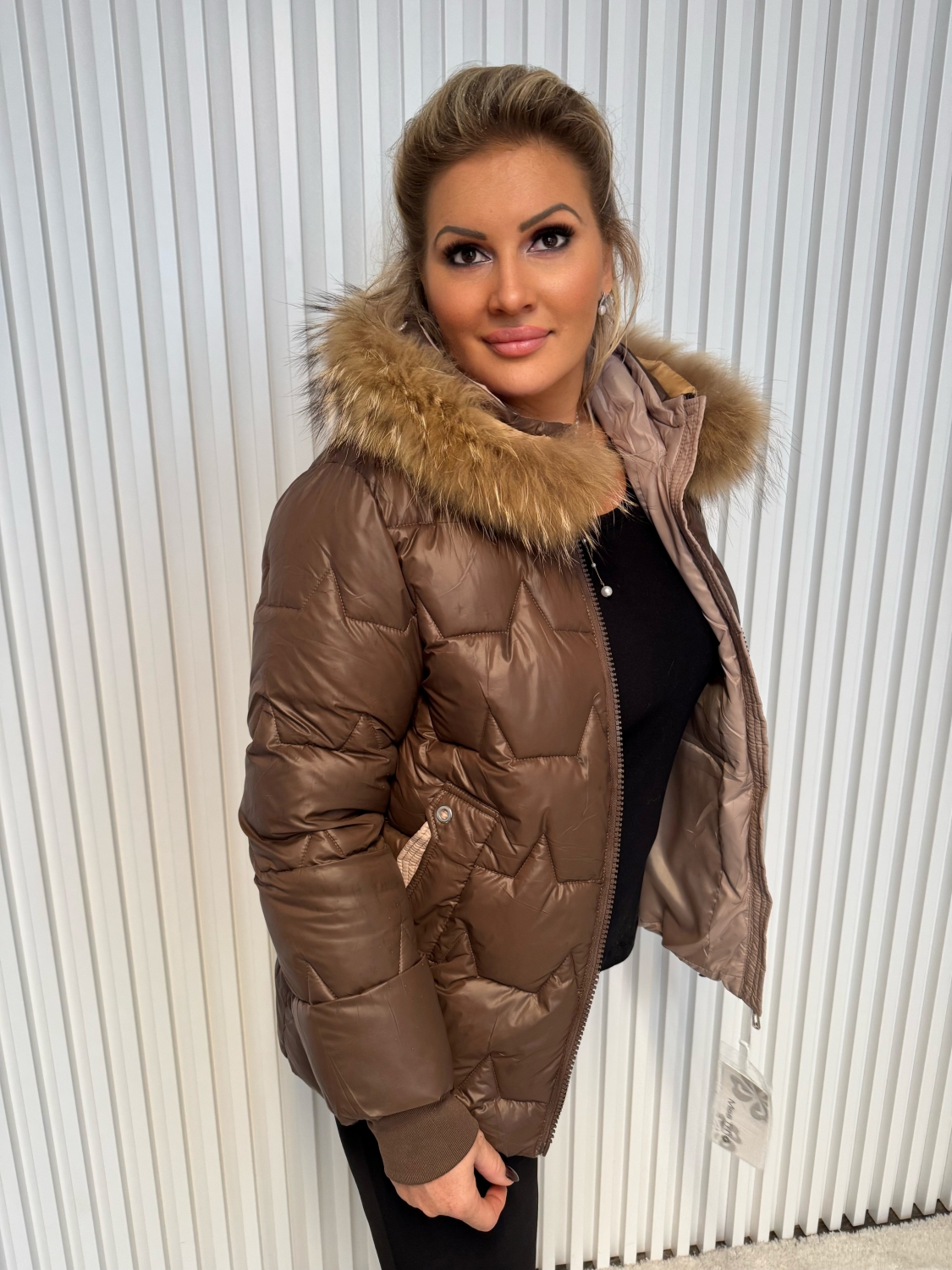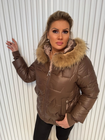 Dámská krátká hnědá bunda Sirmione s kožešinou