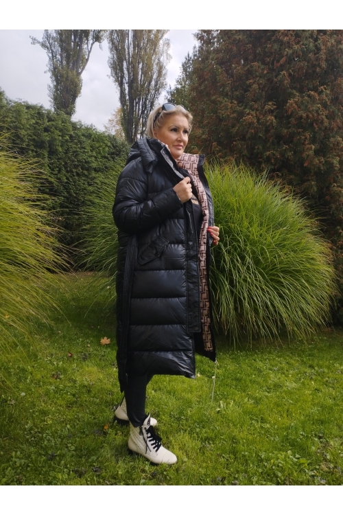 Dámská dlouhá černá zimní prošívaná bunda, kabát Fashion