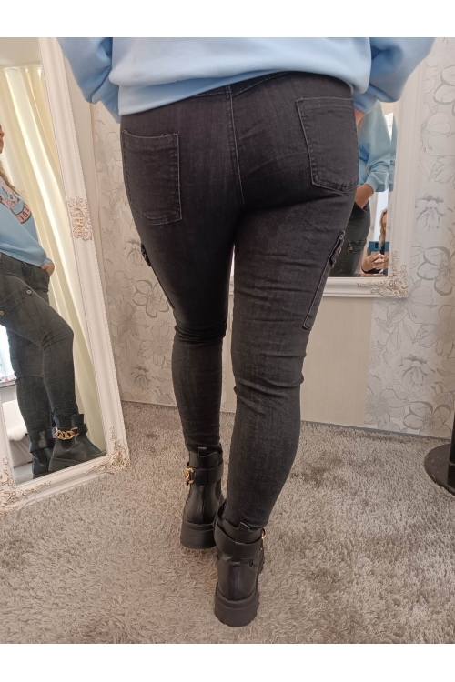 Dámské luxusní černé rifle. Na předním díle je zdobené srdíčko a třpytivé stříbrné a černé kamínky. Na zadním díle jsou kapsy . Rifle se zapínají na zip. Máme velikosti 26, 27, 28, 29 ( cca XS, S, M a L). Velikost 26 má obvod pasu 64cm, obvod boků je 85cm, délka je 93cm, velikost 27 má obvod pasu 68 cm ,obvod přes boky 90cm, délka je 93cm, velikost 28 obvod pasu je 72 cm, obvod přes boky je 94cm,délka je 93cm, velikost 29 obvod pasu je 77cm, obvod přes boky je 98cm, délka je 93cm. Rifle se zapínají na knoflík a na zip. Materiál je elastický. V tomto modelu budeš originální a stylová.