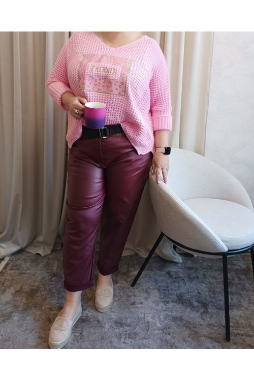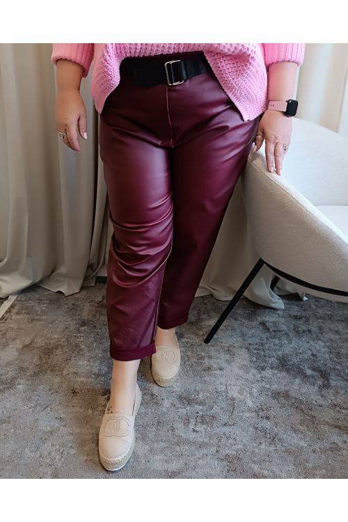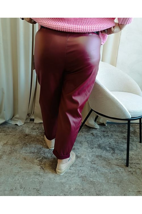Dámské pogumované kalhoty Adri ve vínové barvě s opaskem