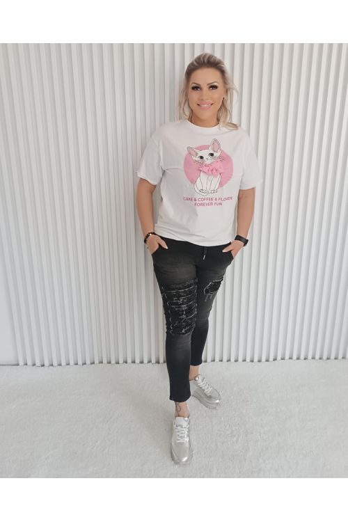 Dámské černé, elastické rifle, velikost je UNI vhodné pro vel. 38 až 42, obvod pasu je 78 až 86, boky 100 až 110, stehno 50 až 60cm, délka 91cm, v pase šňůrkana stažení. Trendy model pro každodenní nošení.