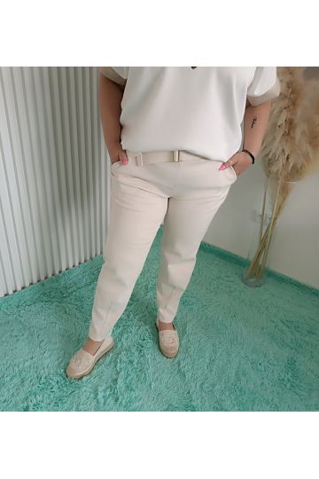 Dámské elastické kalhoty značky Livans ve více barevných provedeních. Kalhoty mají v pase gumu a součástí je opasek. Kalhoty mají vzadu i na bocích kapsy. Kalhoty jsou velmi elastické. Velmi pohodlný model pro různé stylizace.
