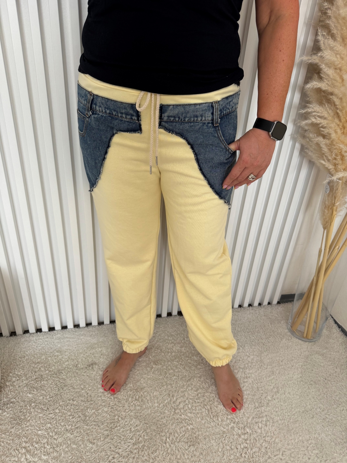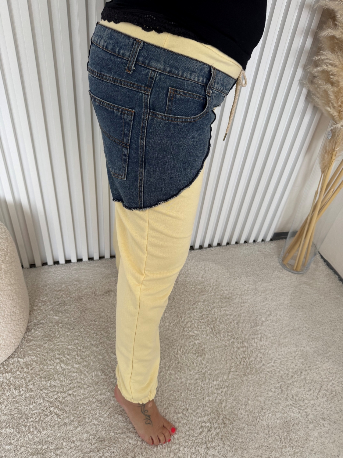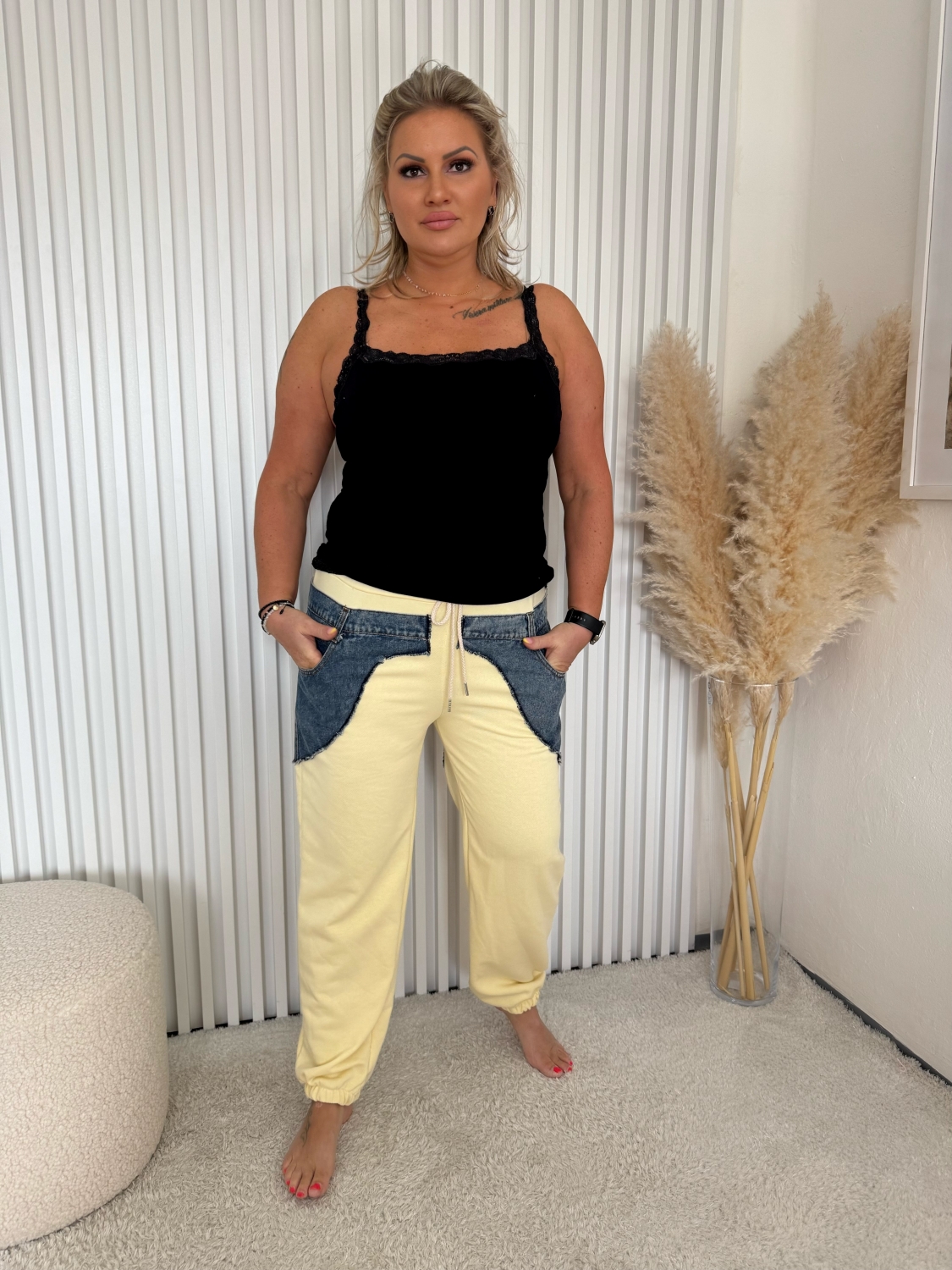Kalhoty Monte jsou navrženy s ohledem na maximální pohodlí a volnost pohybu. Díky elastickému pasu a lehkému materiálu se snadno přizpůsobí vaší postavě, takže si je můžete vzít na sportovní aktivity, jako je jogging nebo fitness, ale také na neformální setkání s přáteli. Kombinace žluté barvy s riflovinou dává těmto kalhotám jedinečný vzhled, který osvěží každý outfit.