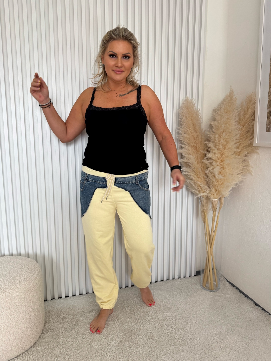 Dámské elegantní legíny kaliopky Pedro v žluté barvě na pásek pod chodidlem