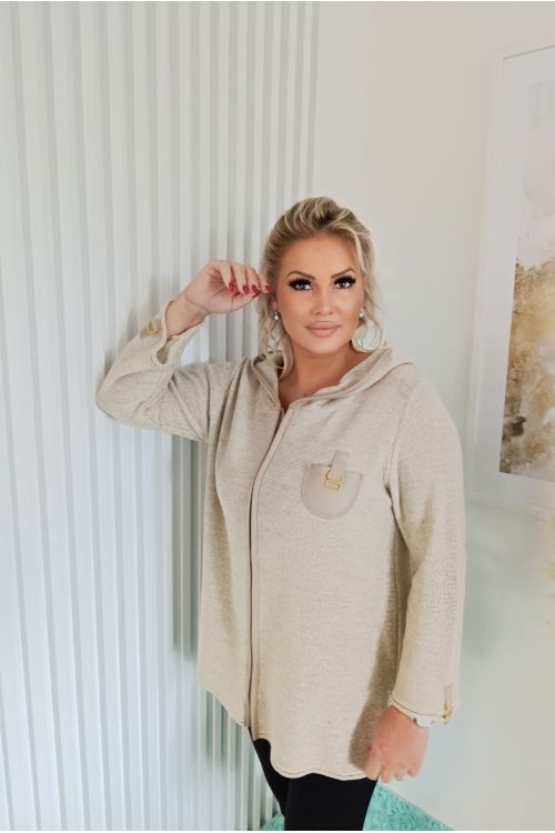 Uvolněný styl a maximální pohodlí - přesně to nabízí tato lněná pletená mikina v přírodní béžové barvě. Jednoduchý design bez rušivých detailů doplňuje pouze ozdobná náprsní kapsa, která dodává modelu jemný akcent. Působí tak minimalisticky a vzdušně. Ideální pro klidné dny, odpočinek doma i procházky v přírodě.