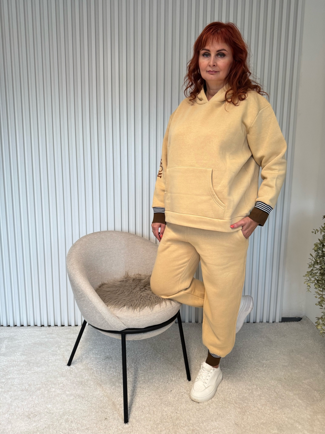 Užijte si pohodlí i v chladnějších dnech s touto stylovou zateplenou dámskou teplákovou soupravou pro baculky.