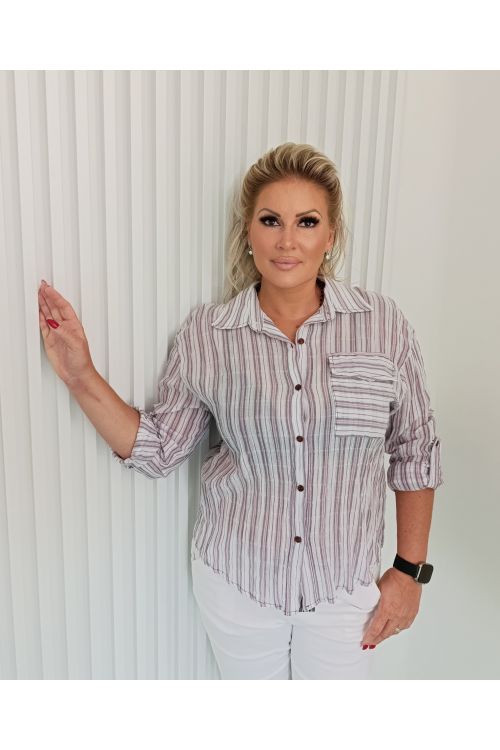 Objevte pohodlí a styl s touto elegantní pruhovanou košilí, která je ideální volbou pro každodenní nošení. Vyrobena z kvalitního materiálu, nabízí komfort během celého dne.