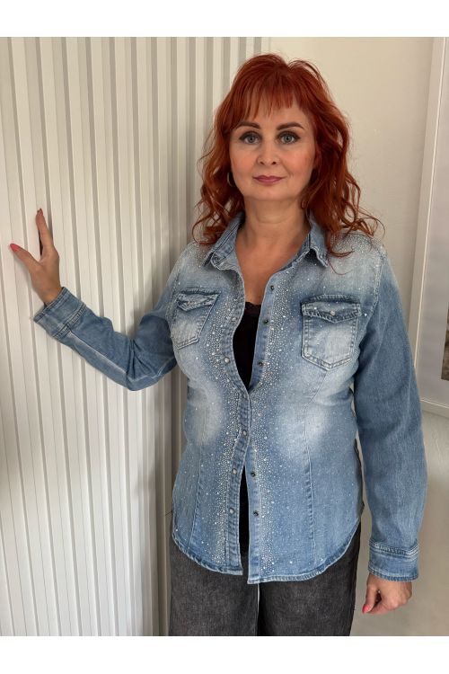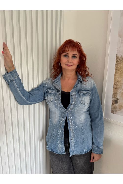 Dámská džínová košile Naomi s kamínky, světle modrá
