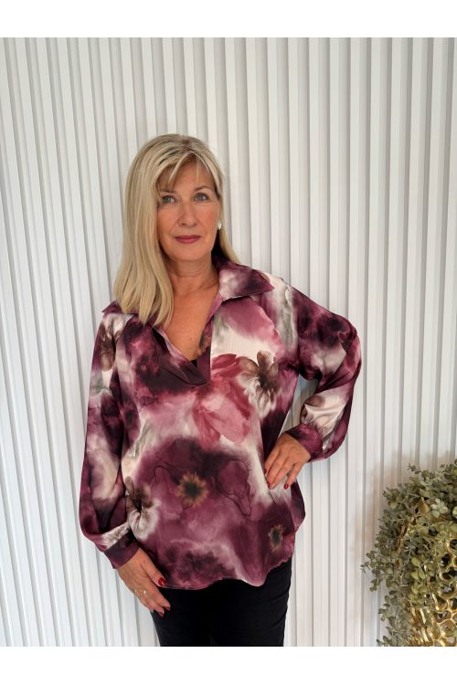 Dámská elegantní volná halenka CHarlotte s límečkovým výstřihem do V, ve dvou barvách.