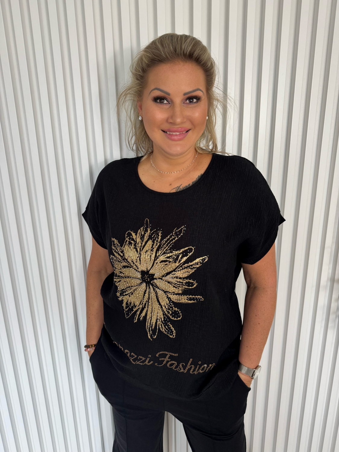 Dámská černá halenka Flow Paparazzi Fashion s aplikací květiny