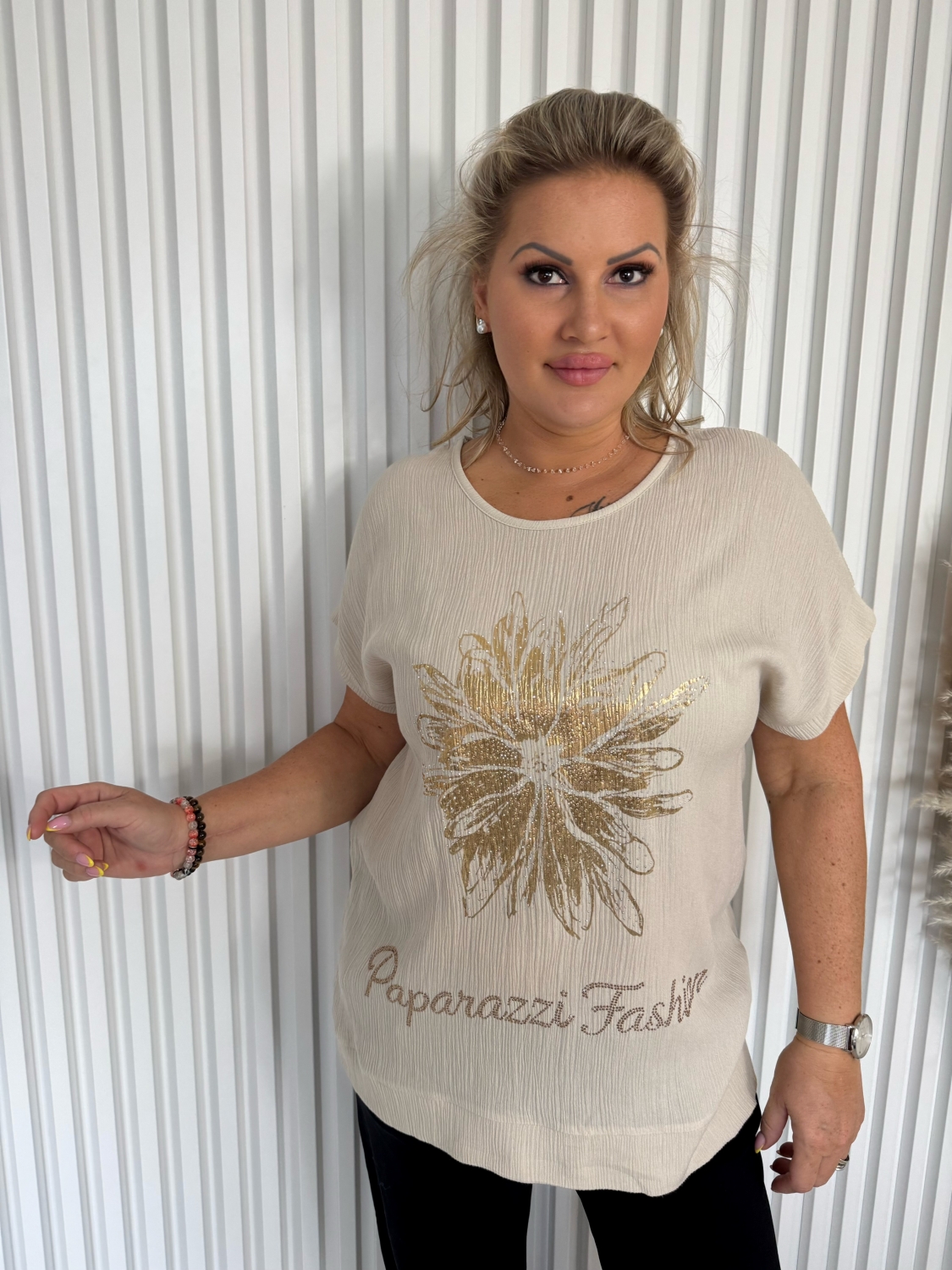 Nečekejte a obohaťte svůj šatník o tuto nádhernou dámskou béžovou halenku Flow Paparazzi Fashion s aplikací květiny. S její pomocí budete vždy vypadat stylově a přitažlivě. Objednejte si ji ještě dnes a užijte si pohodlí a eleganci, které nabízí!