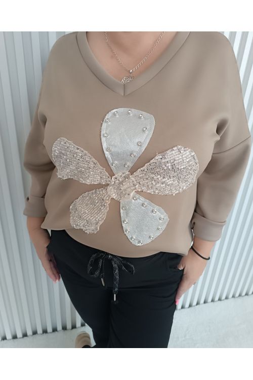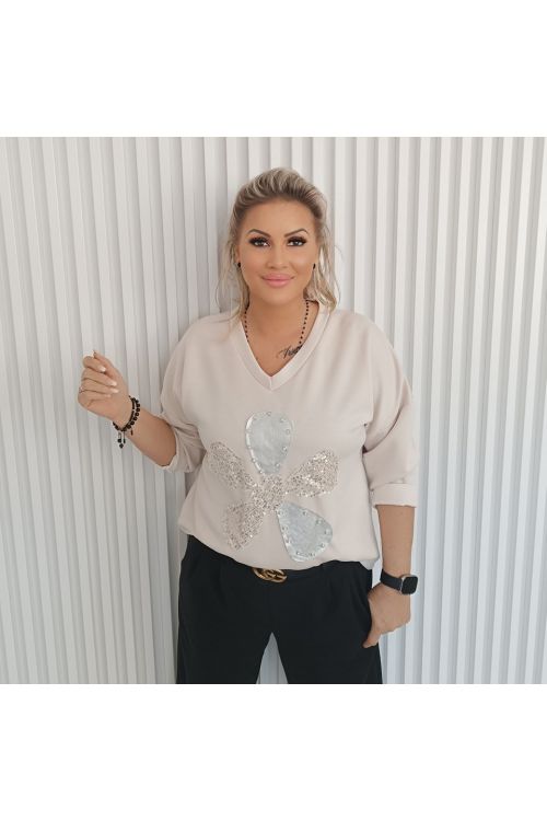 Dámská mikina Lady se sepraným efektem a hvězdným detailem, moderní italský styl s netradičním dekoltem