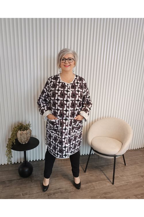 Dámský dlouhý lehký přechodový černobílý kabát Helios