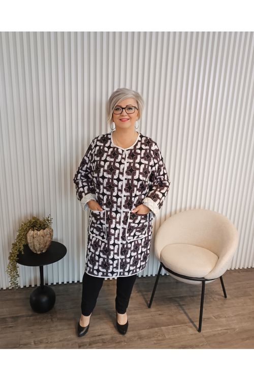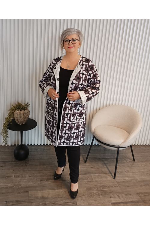 Elegantní černobílý kabátek ideální na přechodné období. Díky mírnému zateplení je skvělou volbou pro chladnější podzimní nebo jarní dny, kdy potřebuješ něco lehkého, ale hřejivého.
