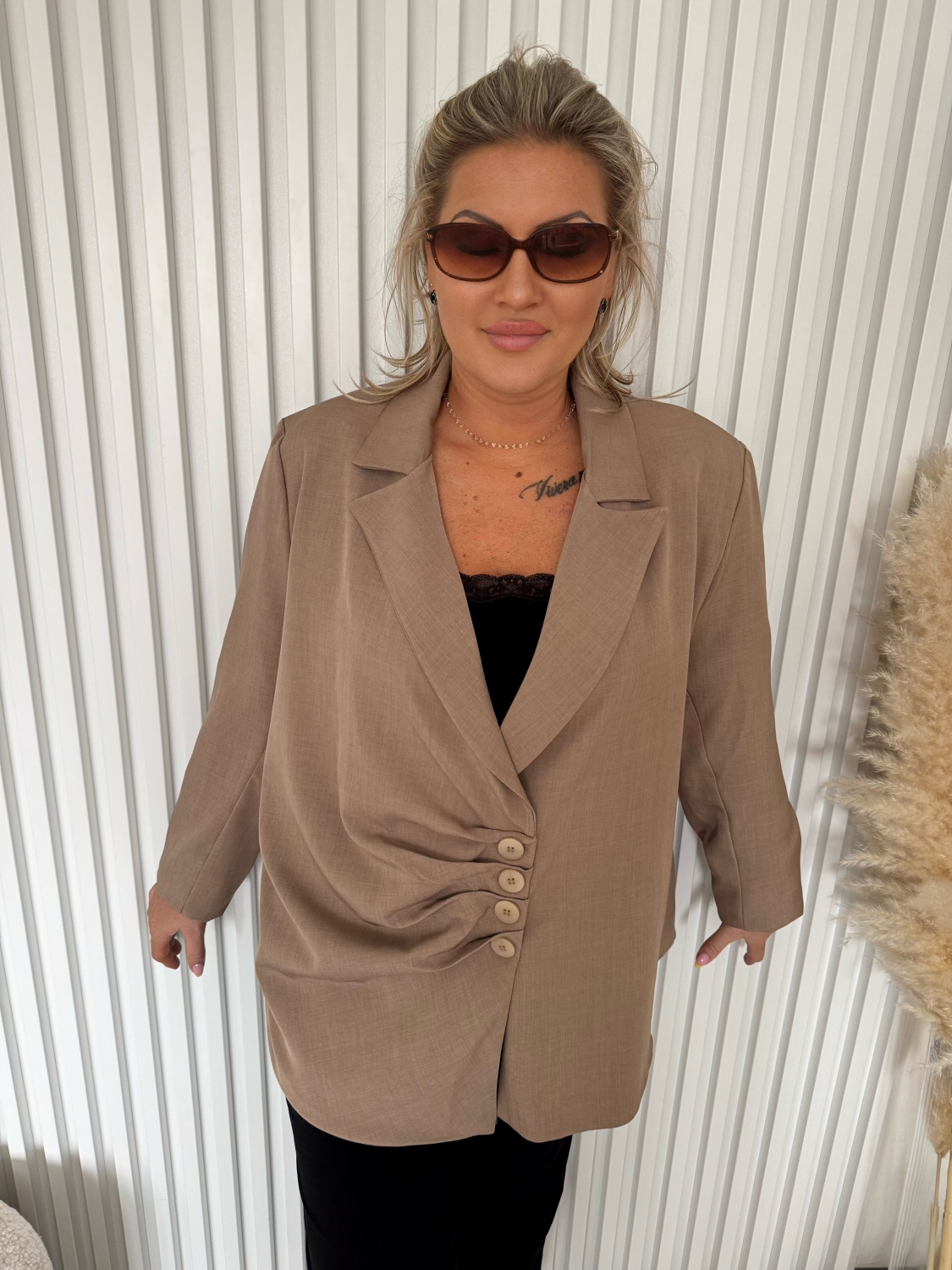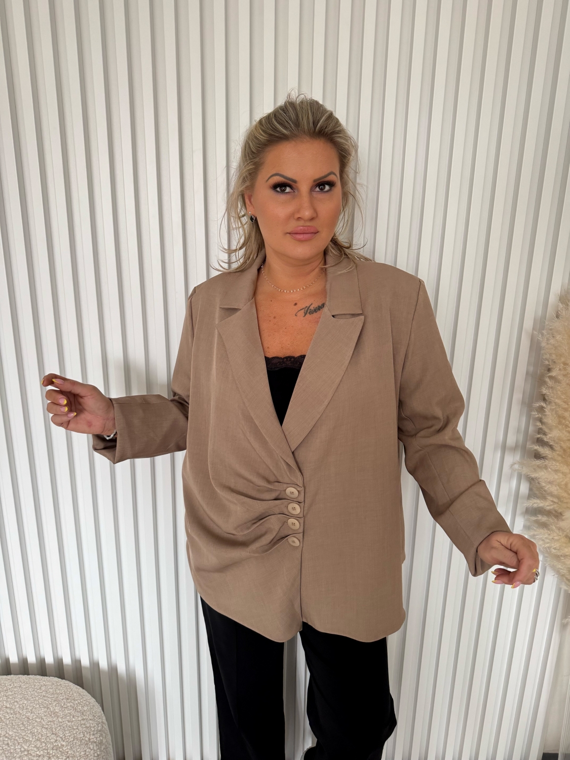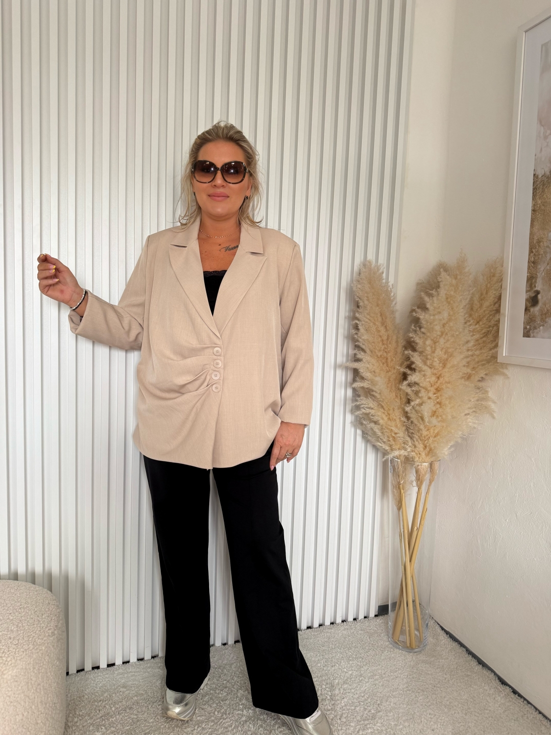 Dámské elegantní černé sako Marci s ozdobnou krajkou na délce a rukávech, zapínání knoflík