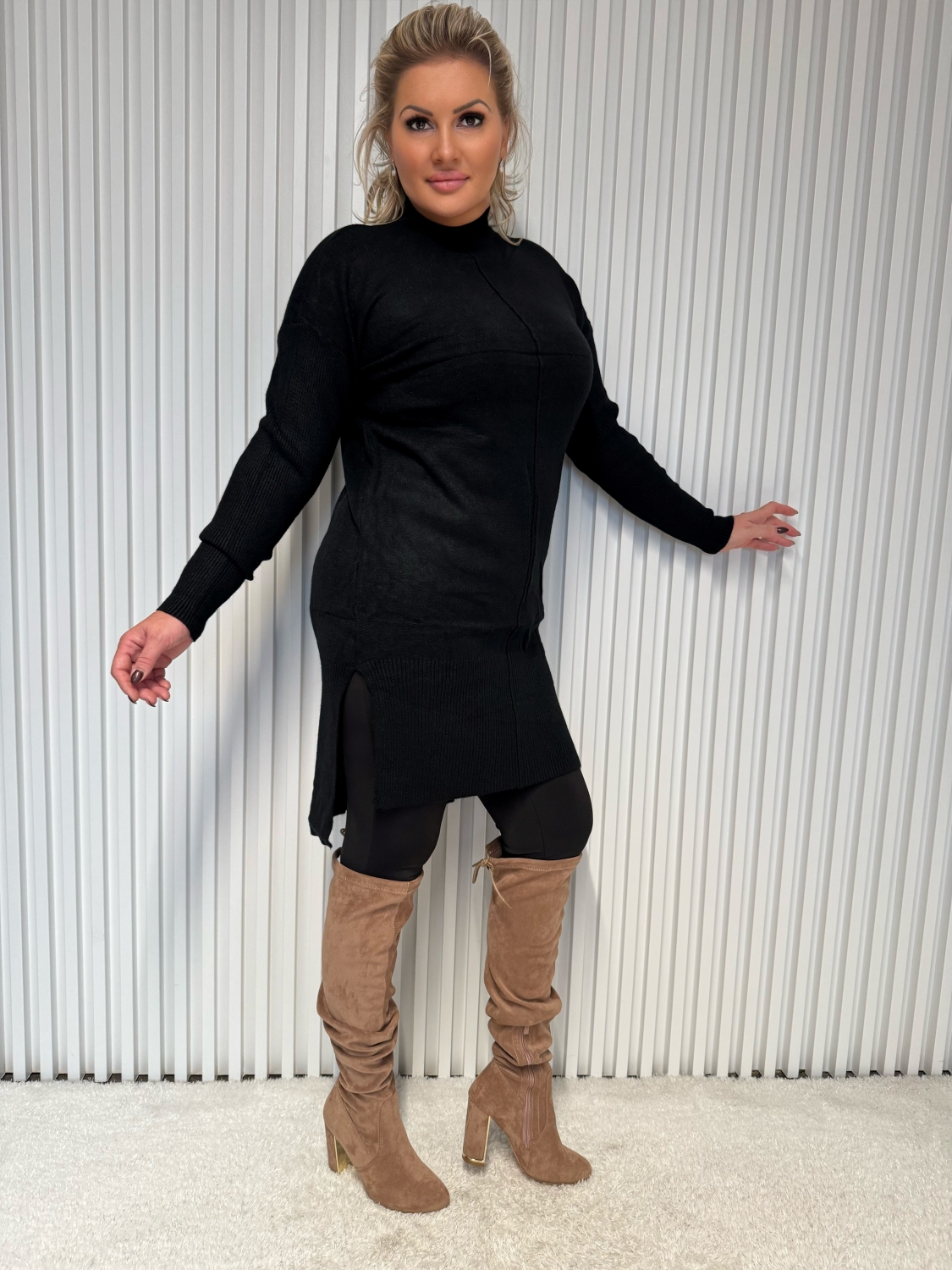 Dámské úpletové šaty ve více barevných kombinacích. Materiál šatů je velmi elastický a příjemný na nošení. Šaty mají žebrování na rukávech a spodní části šatů. Velmi pohodlný model, který můžeš nosit jako šaty nebo dlouhý svetr.