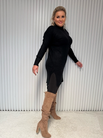 Dámské černé oversize šaty s tylovou sukní. Obvod přes prsa je 110 až 114cm, obvod přes boky je 140cm, délka je 100 cm. Materiál je bavlna s elastenem, sukně je tylová. Elegantní a stylový model.