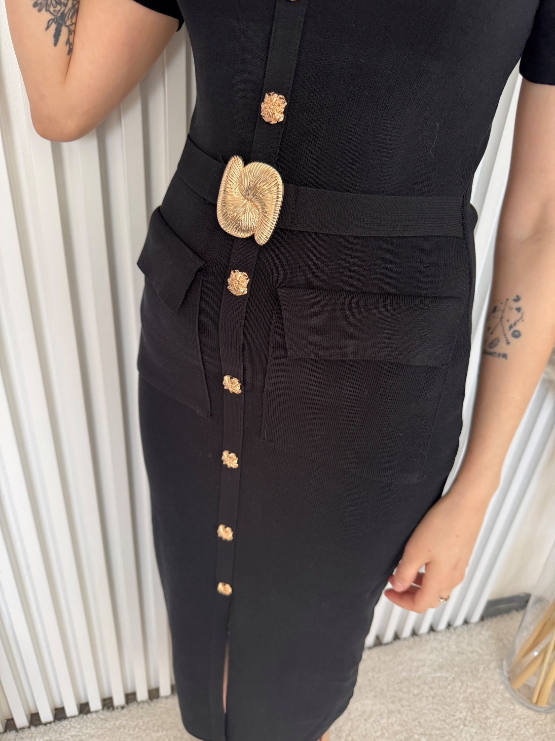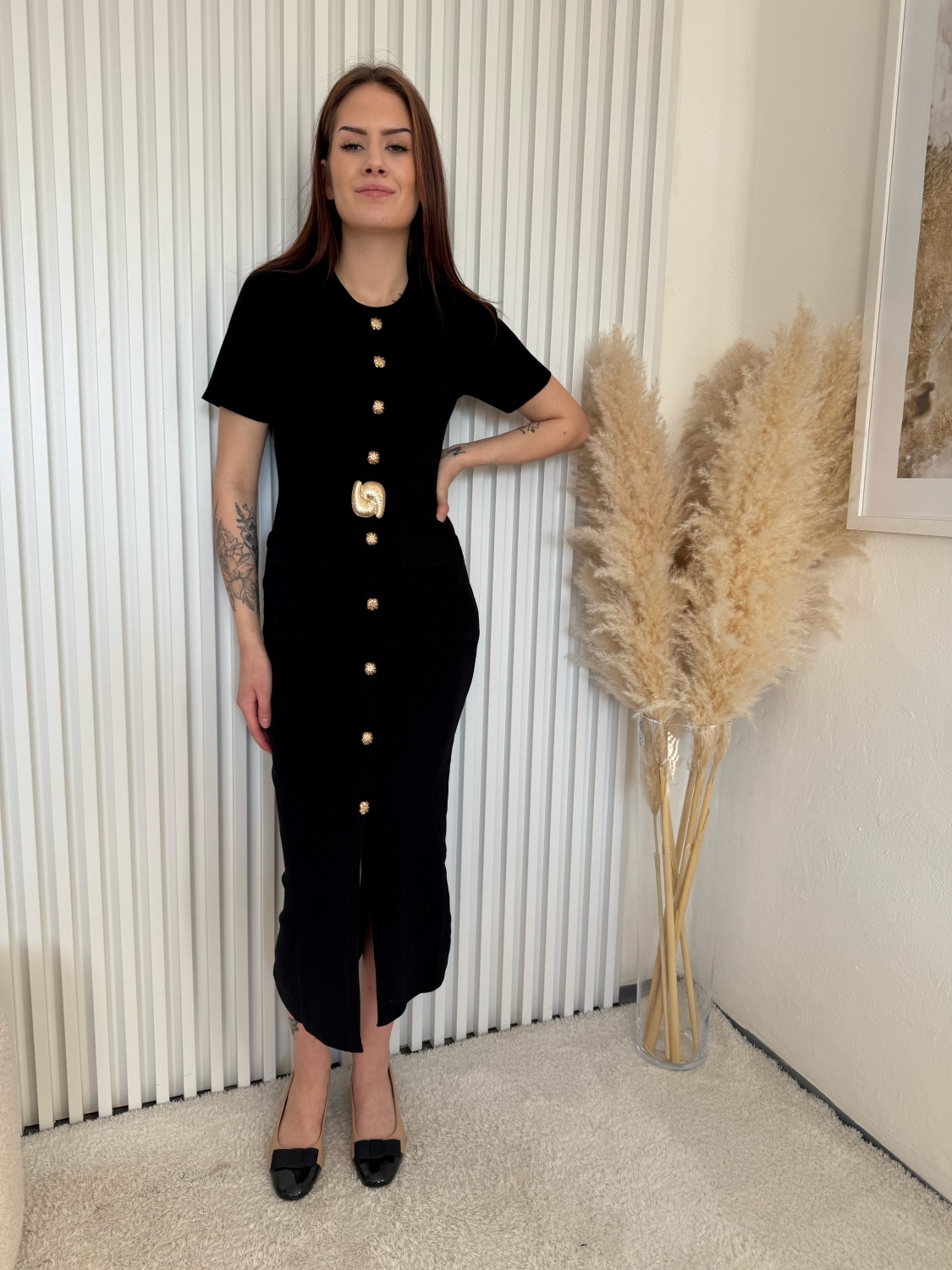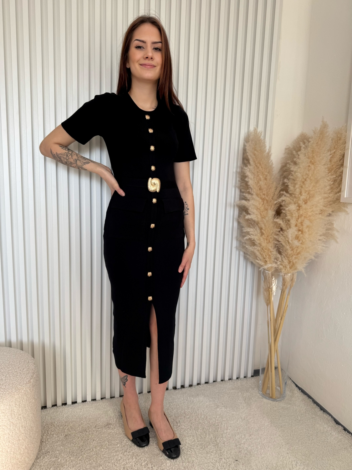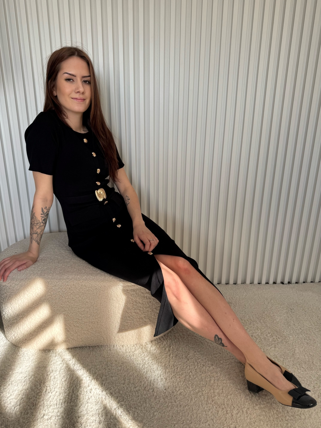 Dámské elegantní šaty Eliza s páskem a kolovou sukní v černé a tmavě modré barvě, italského stylu
