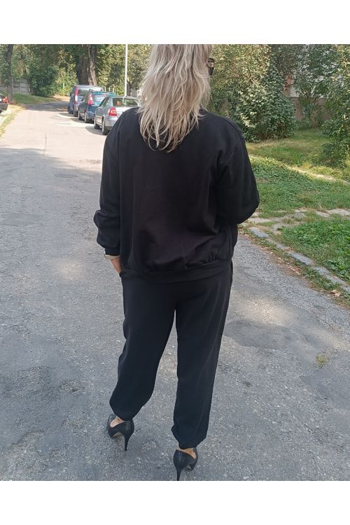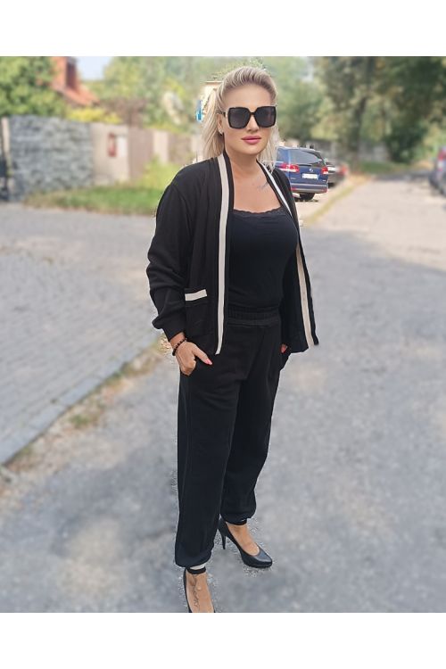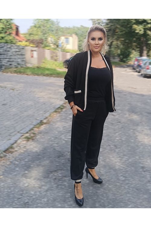 Dámská vycházková černá souprava Esmeralda sako s kapucí a kalhoty