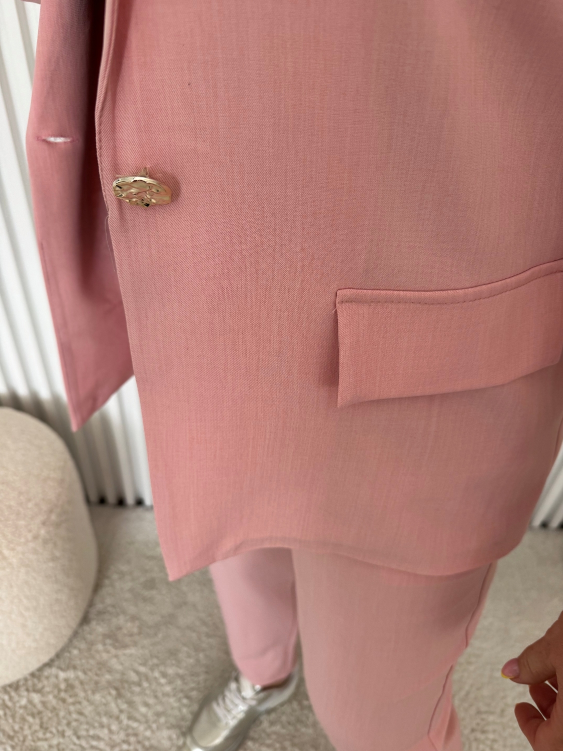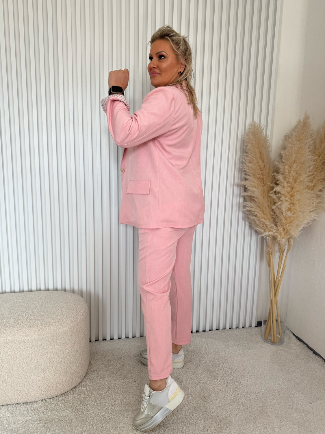 Dámský elegantní kalhotový kostým Dejna v růžové barvě je ideálním kouskem pro moderní ženu, která si potrpí na styl a pohodlí. Tento kostým je navržen tak, aby podtrhl vaši ženskost a dodal vám sebevědomí v každé situaci. Ať už se chystáte do kanceláře, na obchodní schůzku nebo na společenskou událost, s tímto kostýmem budete vždy vypadat skvěle.