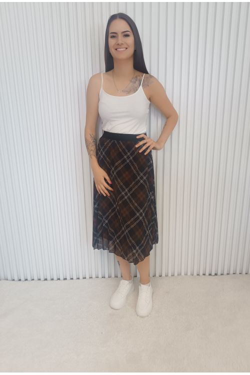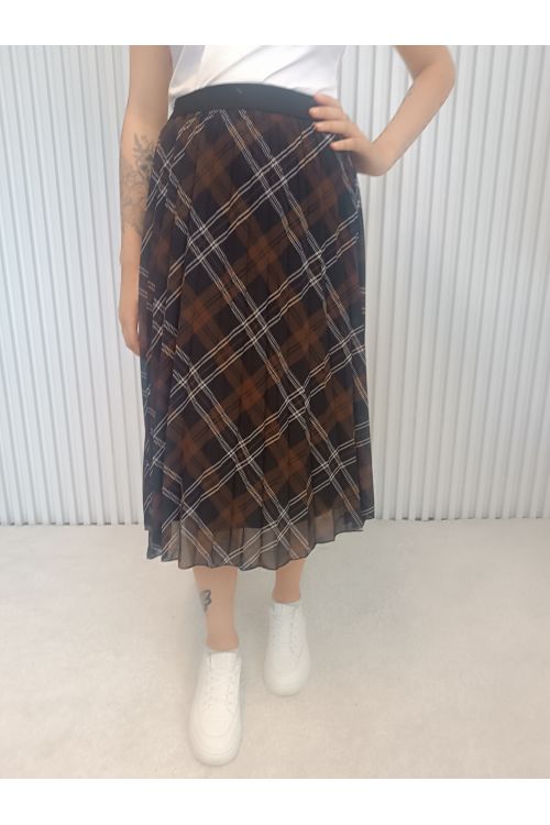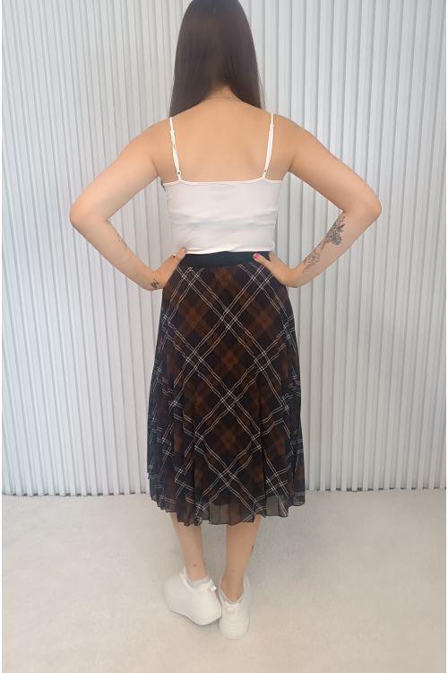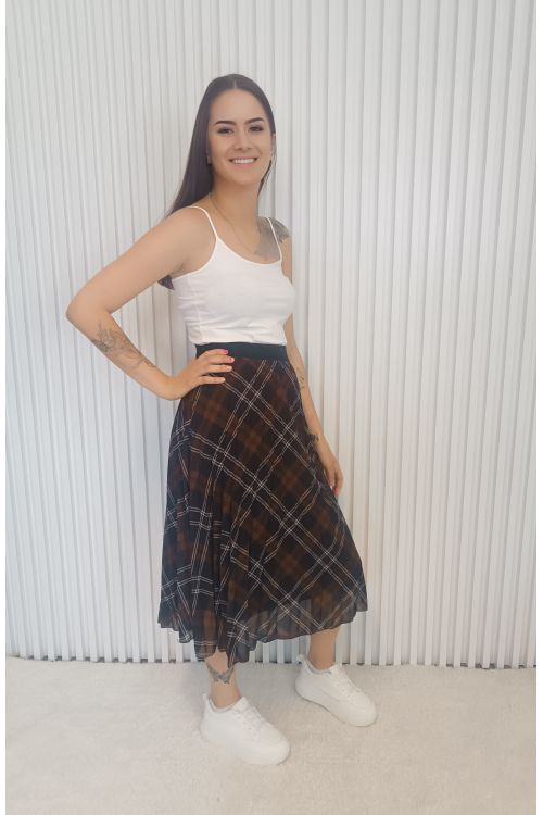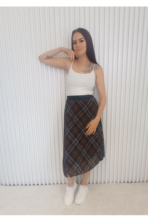 Dámská plisovaná midi sukně Kamila v kostkovaném vzoru, hnědo-černá.