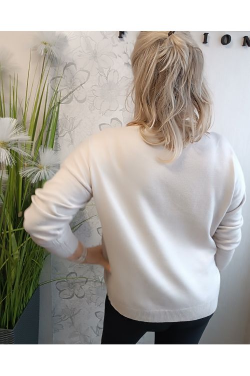 Dámský elegantní bílý svetr Loreta na zapínání s černými lemy