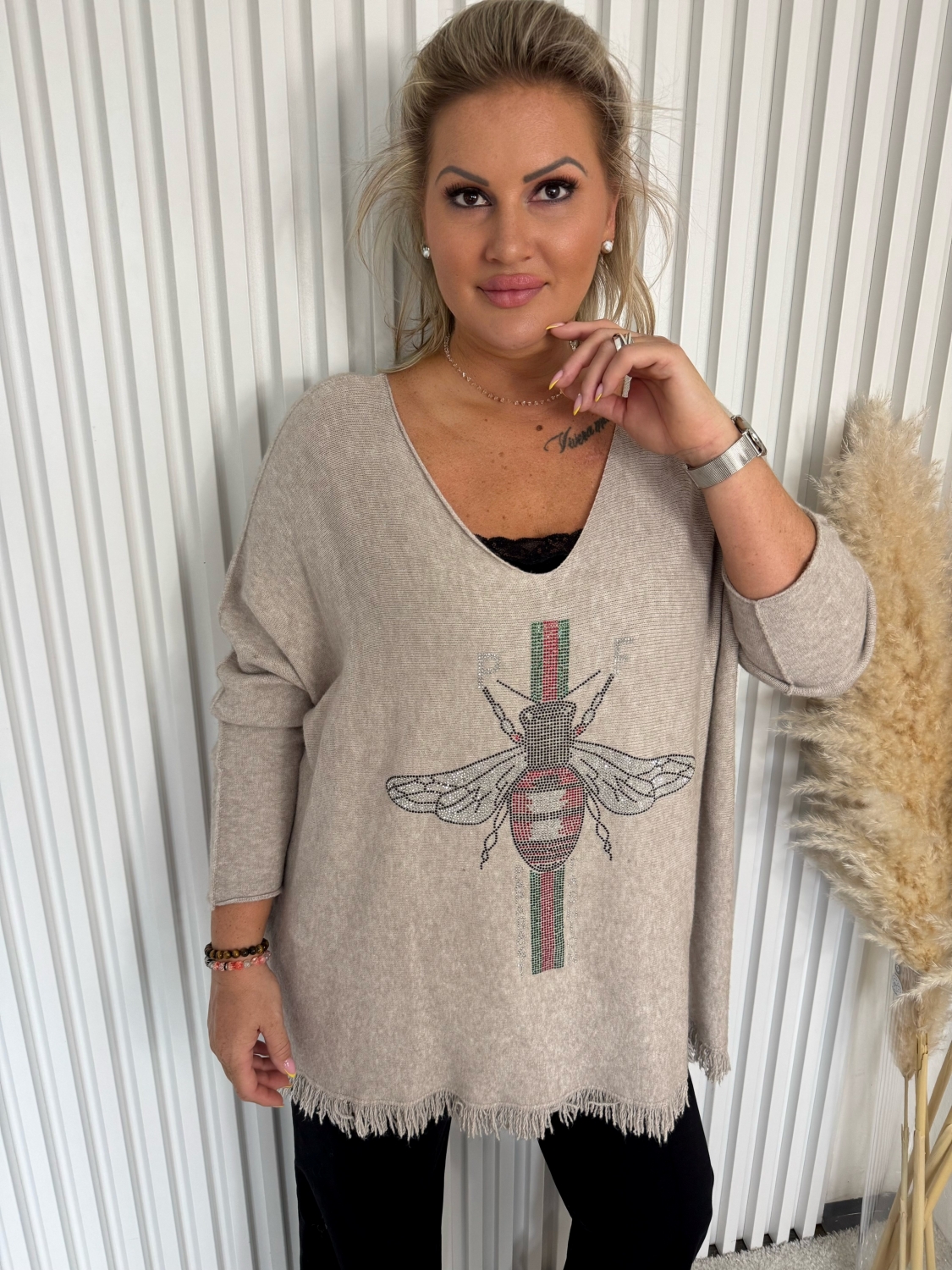 Nečekejte a obohaťte svůj šatník o tento stylový a pohodlný svetr. Dámský dlouhý oversize béžový svetr Claudie s třásněmi značky Paparazzi Fashion je tu, aby se stal vaším oblíbeným kouskem, který vám dodá sebedůvěru a šarm. Objednejte si ho ještě dnes a zažijte pocit dokonalosti!