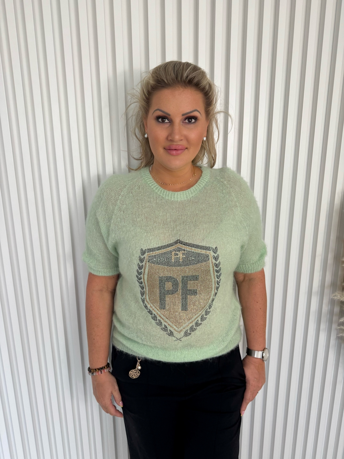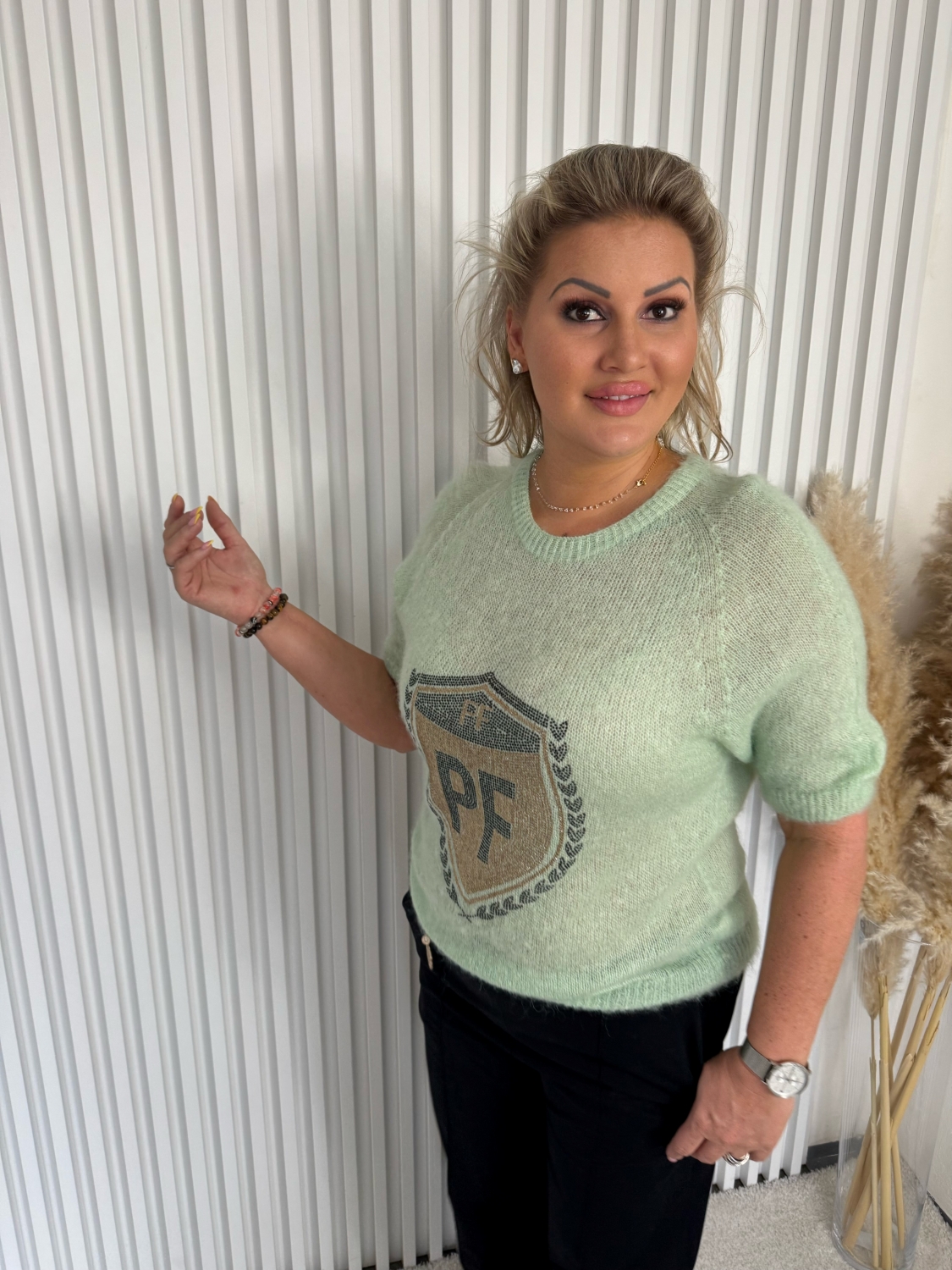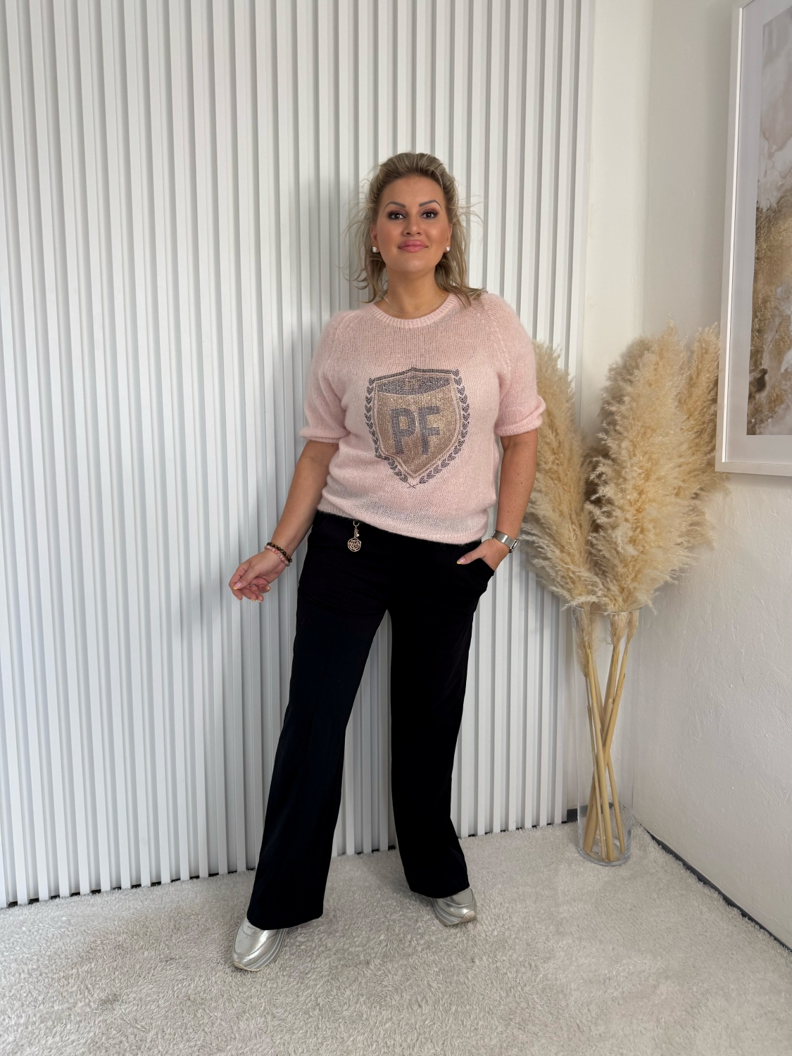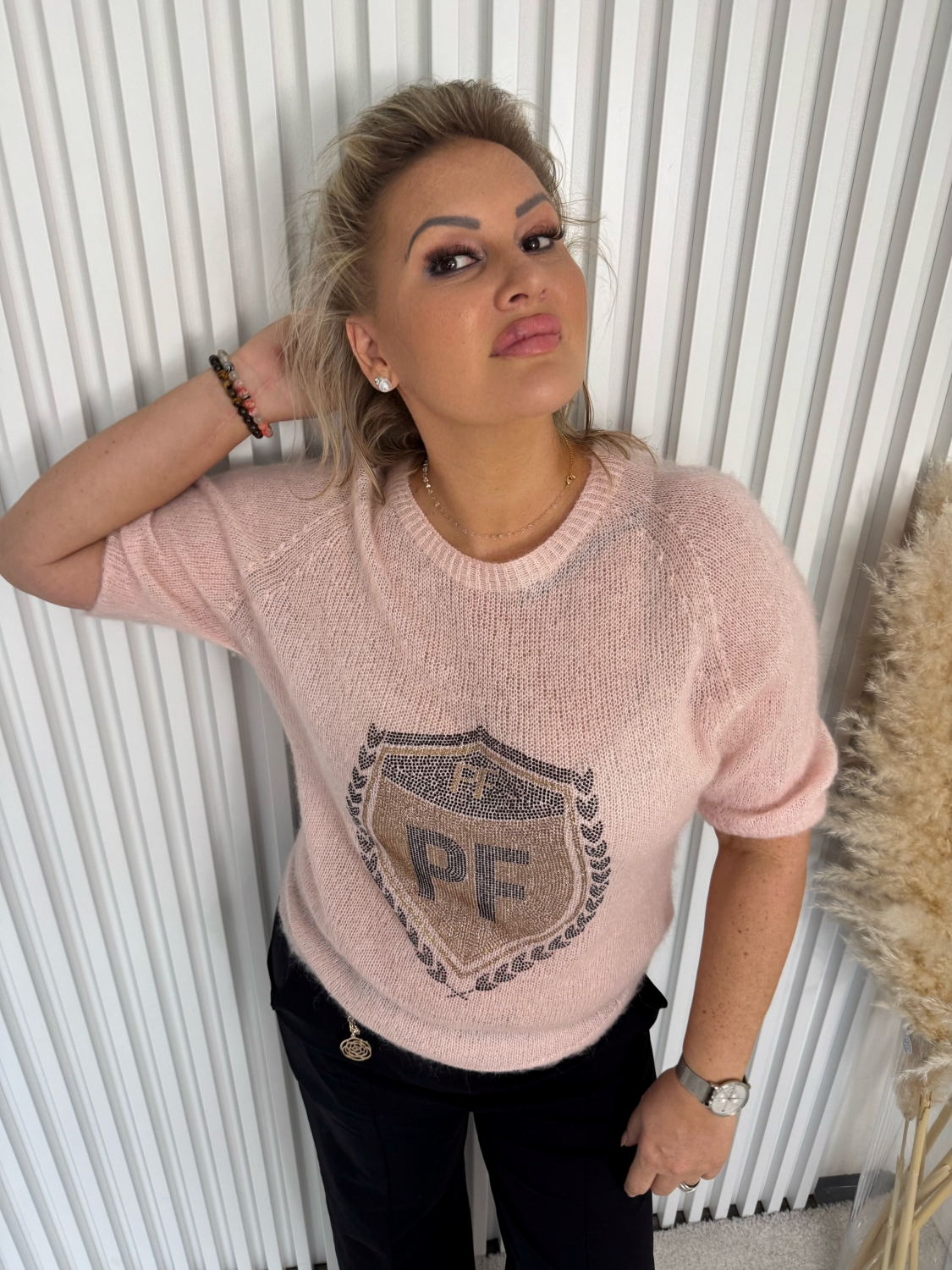 Dámský růžový rolákový elastický svetr s krátkým rukávem Aurelie