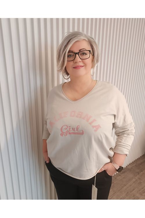 Dámské elegantní jemný růžový svetřík Mona s výstřihem, potiskem plameňáků a ombre efektem, italského stylu