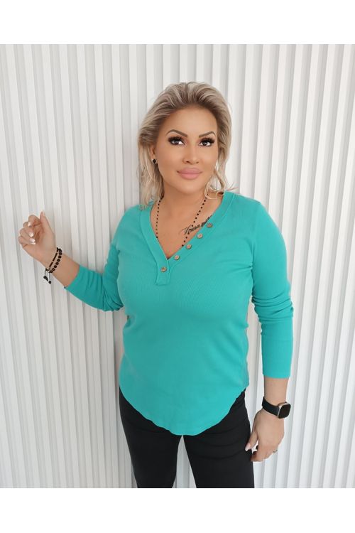 Dámské basic tričko v černé, růžové, tyrkysové a fialové barvě. Tričko má výstřih do V a ozdobné knoflíky. Trendy model do každého šatníku.