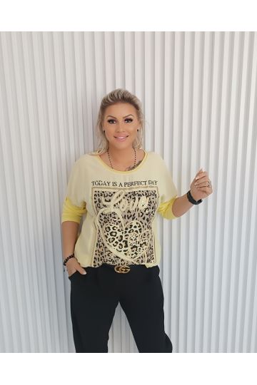 Dámské elastické tričko v různých barvách. Tričko má potisk a kulatý výstřih. Materiál je velmi příjemný. Vhodné pro větší i menší velikosti. Trendy model pro různé stylizace.