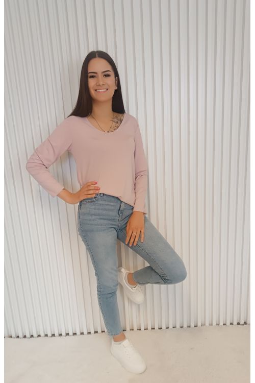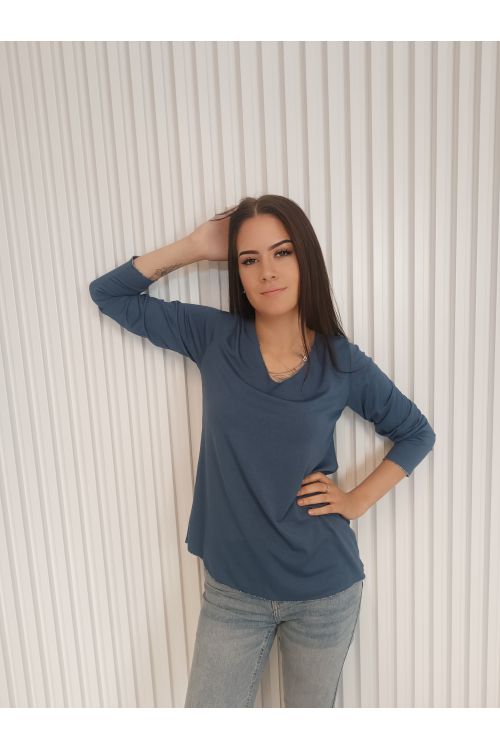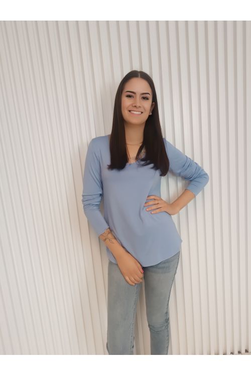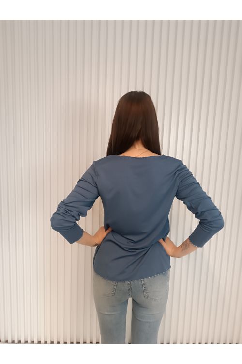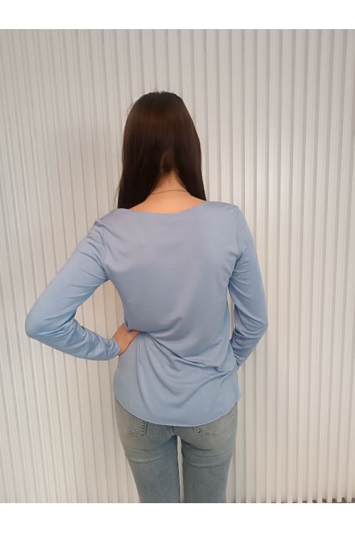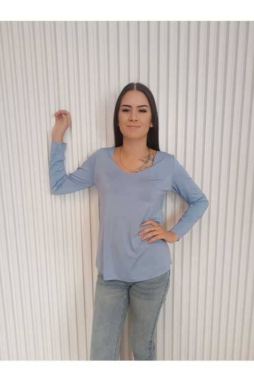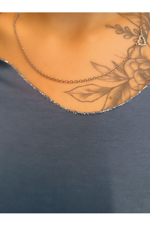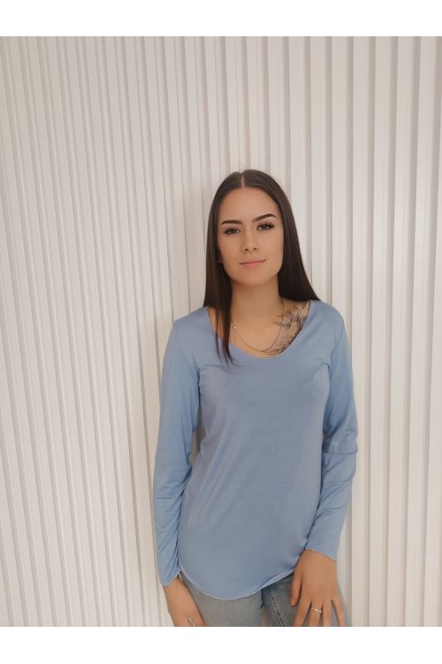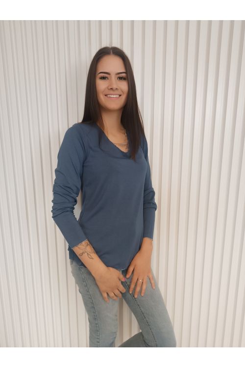 Pohodlné, stylové a univerzální dámské tričko s dlouhým rukávem a elegantním detailem v podobě jemné stříbrné niti na lemech.