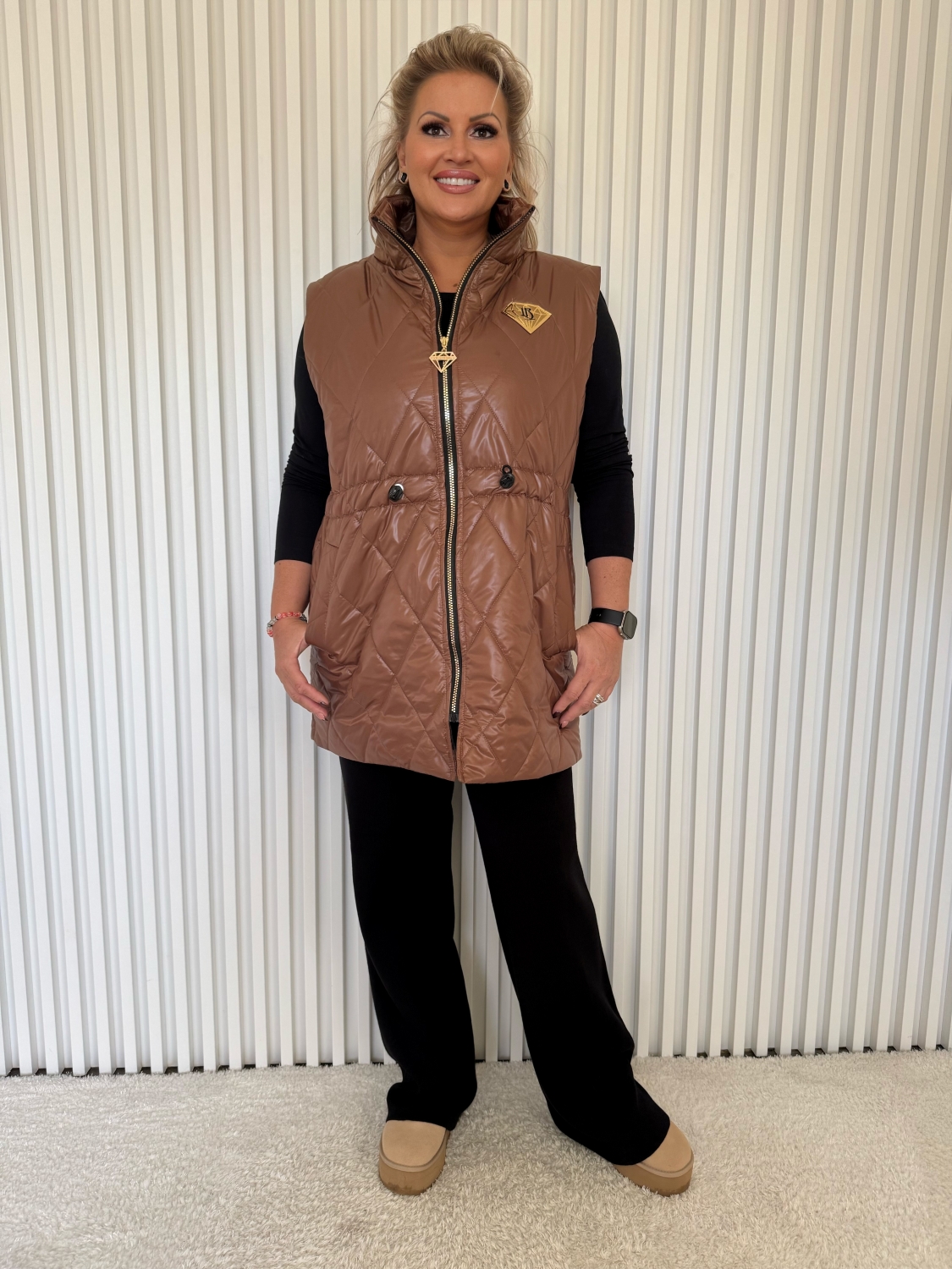 Dámská zateplená zimní vesta Rita s kapucí v mokka barvě