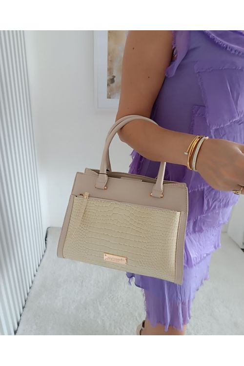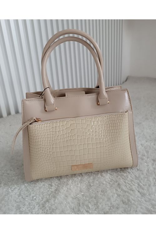 Elegantní dámská kožešinová kabelka v béžové barvě.