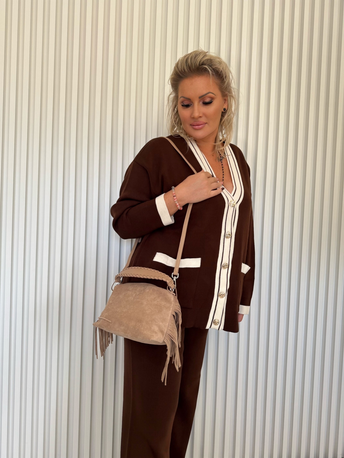 Dámská semišová kabelka do ruky s odnímatelným popruhem a třásněmi