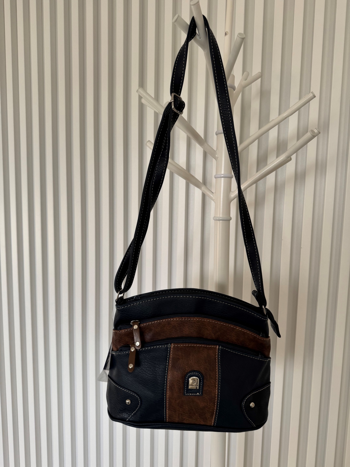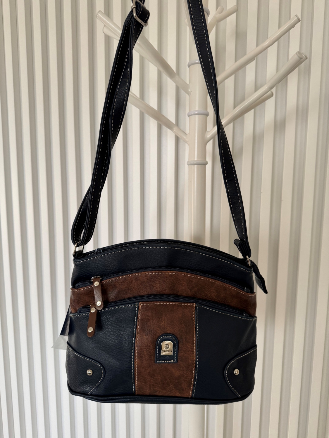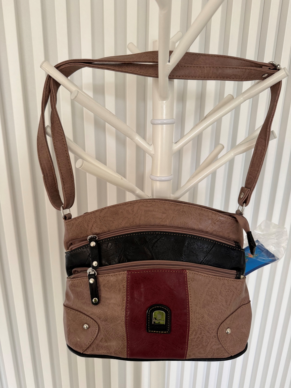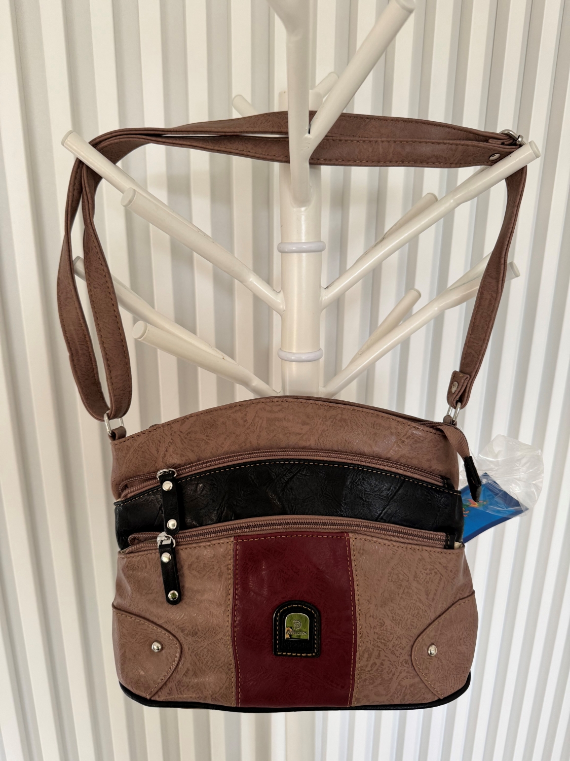 Dámská crossbody kabelka, vícebarevná kombinovaná taška s nastavitelným popruhem.