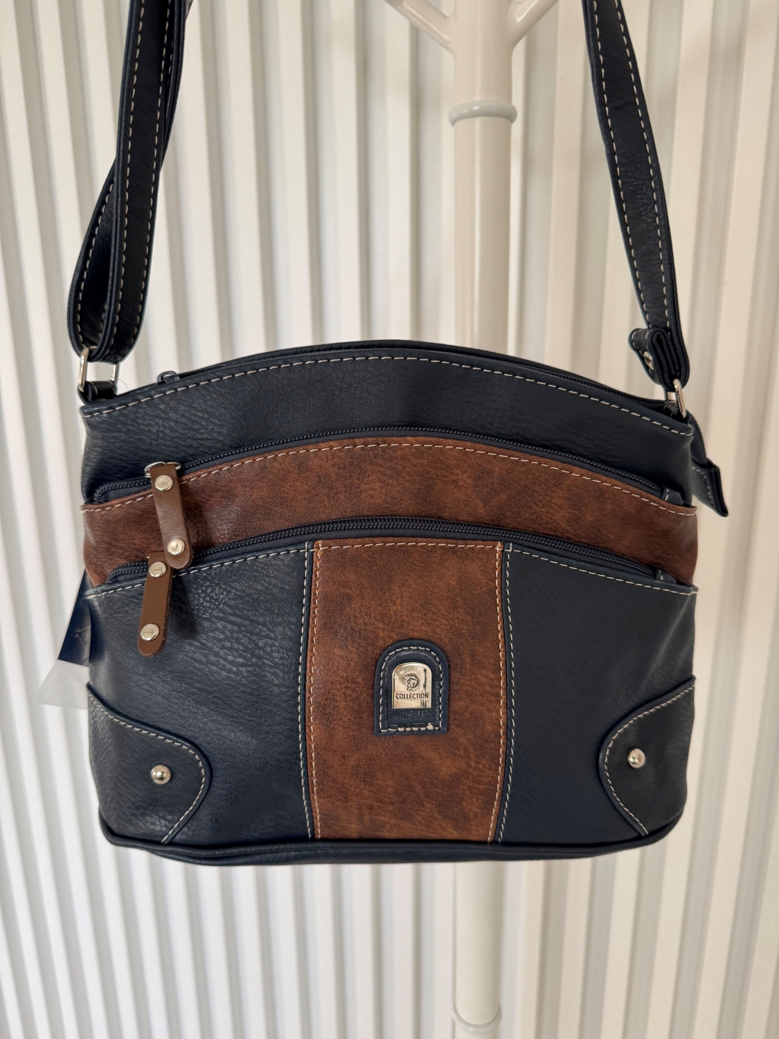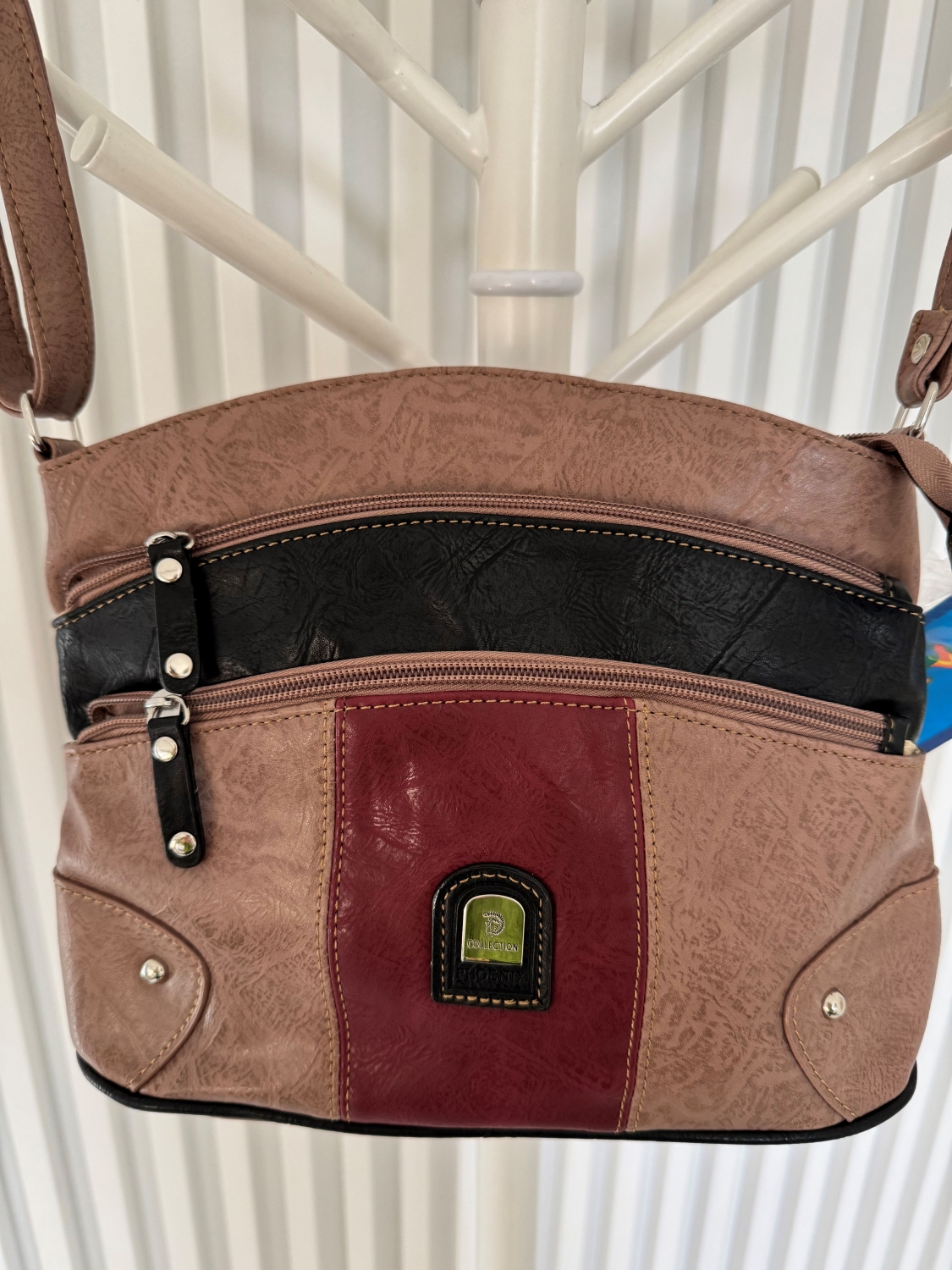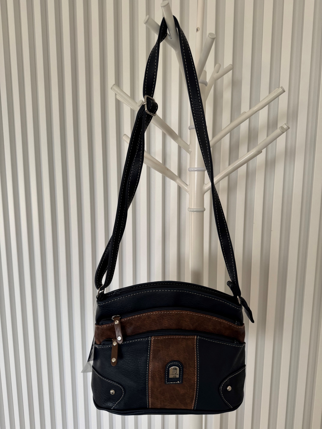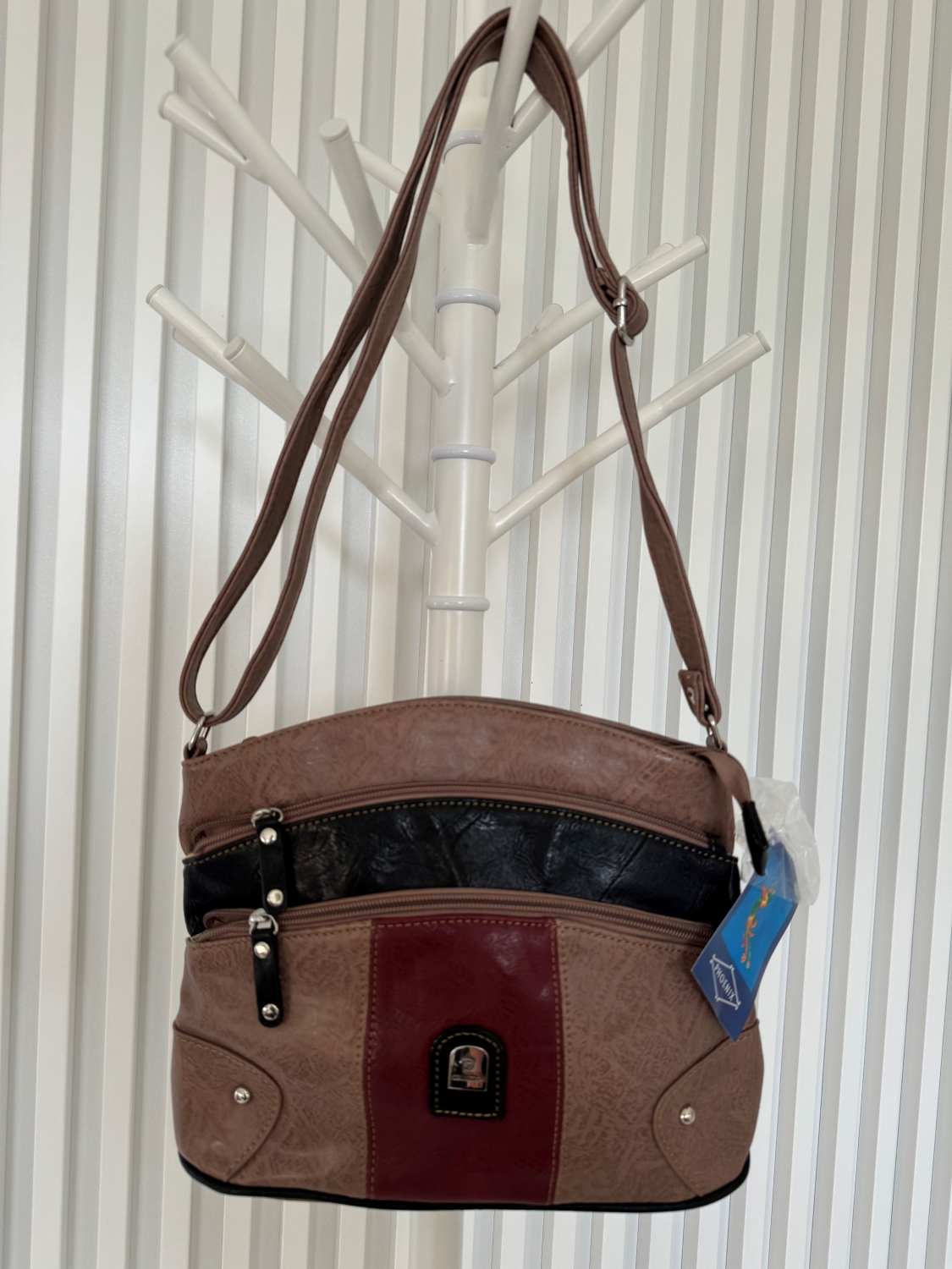Dámská crossbody kabelka, vícebarevná kombinovaná taška s nastavitelným popruhem.