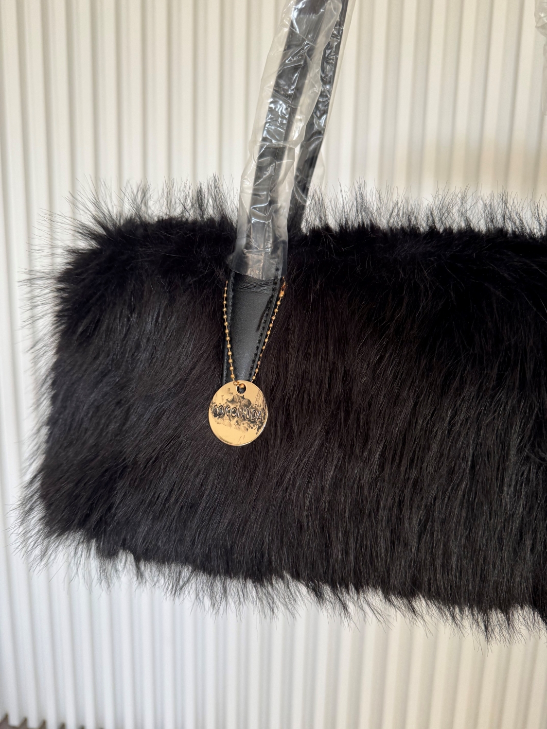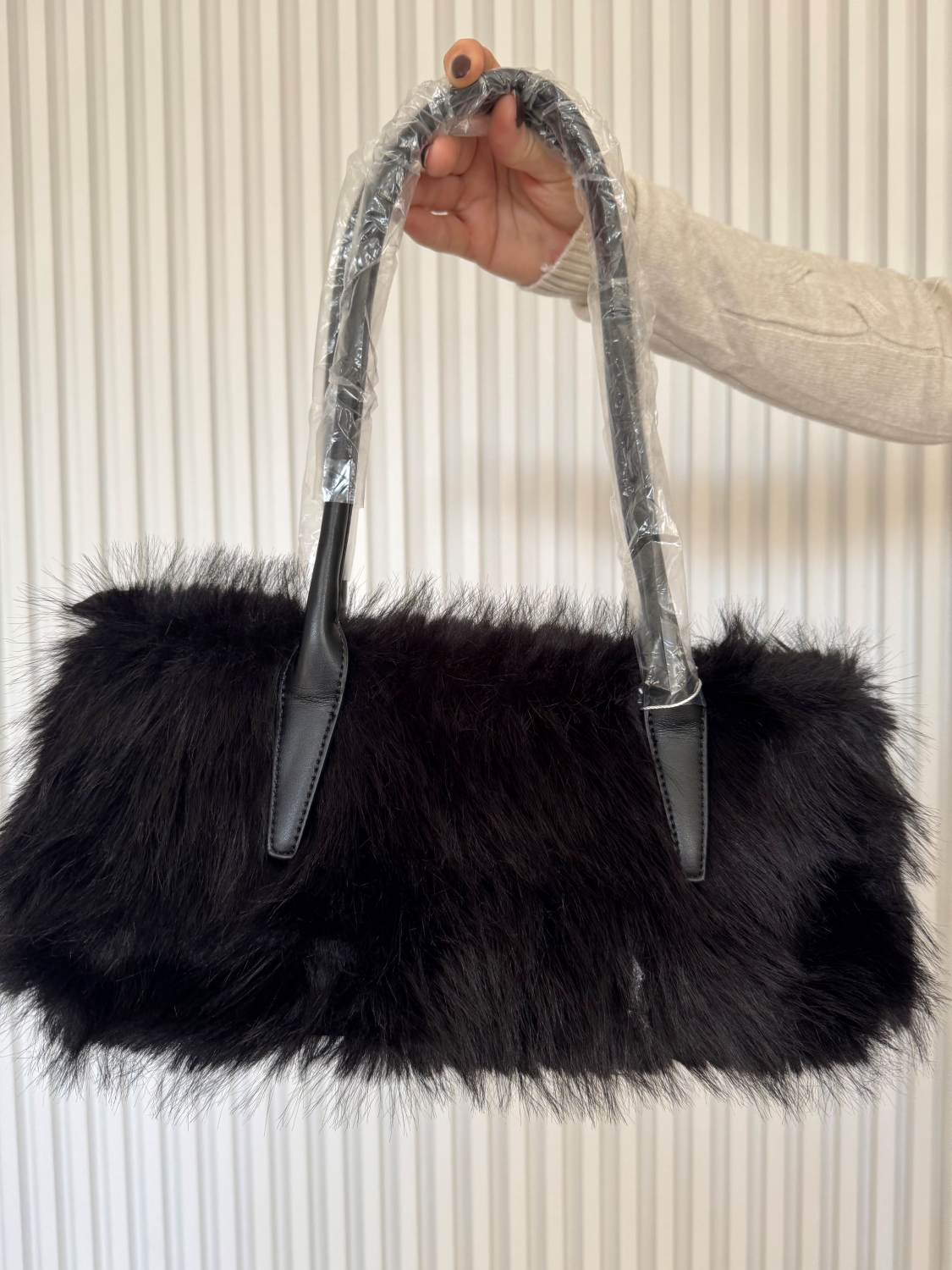 Elegantní dámská kožešinová kabelka v černé barvě.