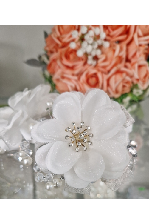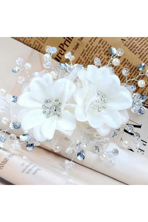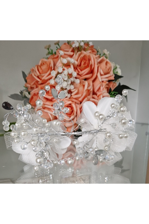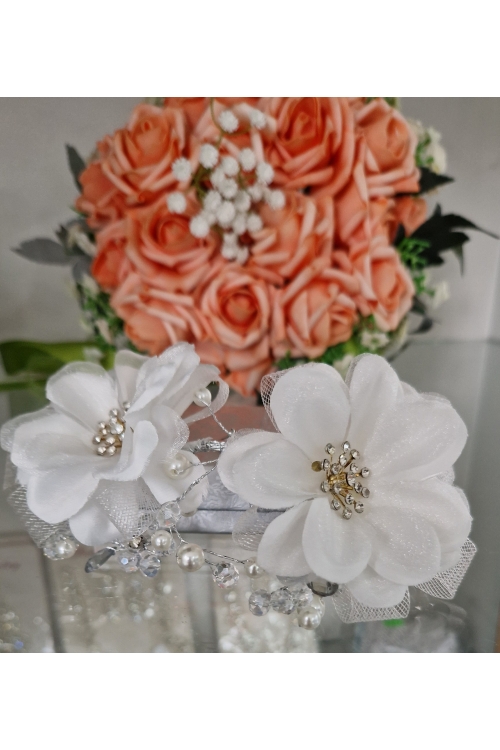 Ozdoba do vlasů květiny v bílé barvě s perličkami, bižuterie.