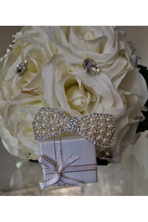 Svatební kytice s perlami a kamínky.