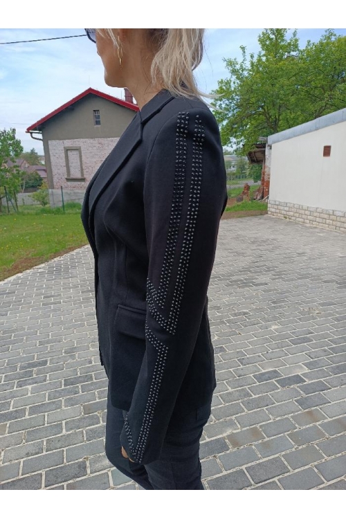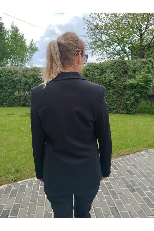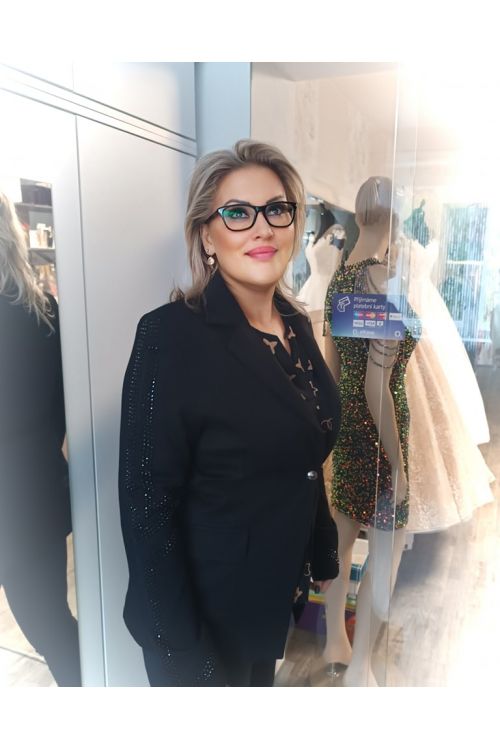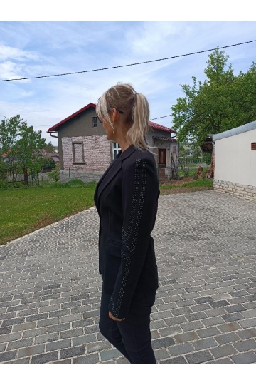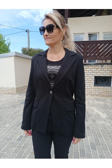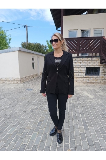 Dámské luxusní černé sako velikost 36,38,40 a 42. Sako se zapíná na knoflík a je podšité. Velikost 36 má obvod přes 90cm, délka je 71 cm , velikost 38 má obvod přes prsa 93 cm, délka je 72cm, velikost 40 má obvod přes prsa 95cm, délka 75cm, velikosti 42 má obvod přes prsa 100cm, délka je 77cm. 1590 Kč. Velmi elegantní model k různým stylizacím.